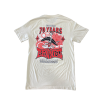Bennett Limited Edition 70th Anniversary in colour cream. Soft cotton. Printed locally using non nasty inks in Brookvale!
