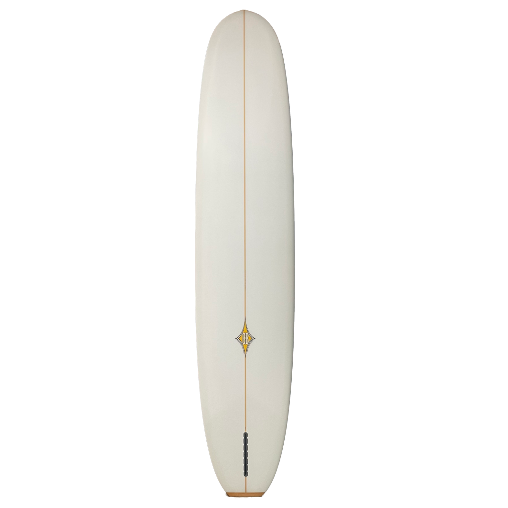 9'6.5" x 23" x 3" designed and shaped by Tom Bennett.