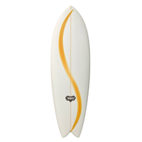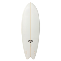 Classic, timeless twin fish design. Stable, easy to carve, flat in entry rocker. A wave catching machine.