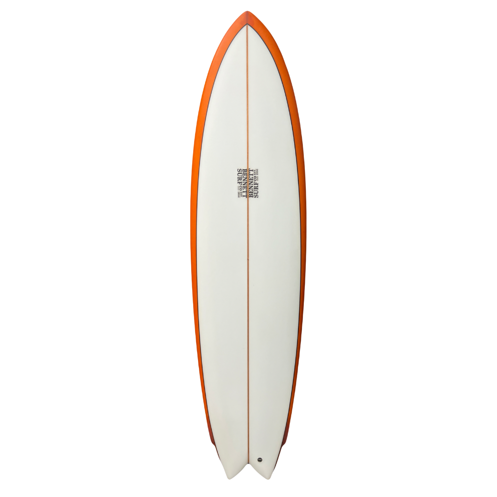 Classic, timeless twin fish design. Stable, easy to carve, flat in entry rocker. A wave catching machine.